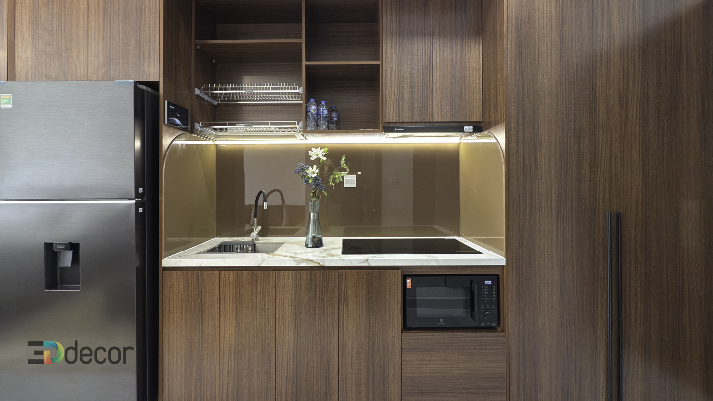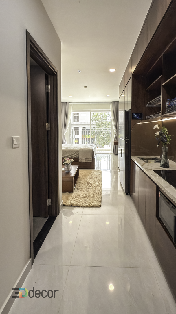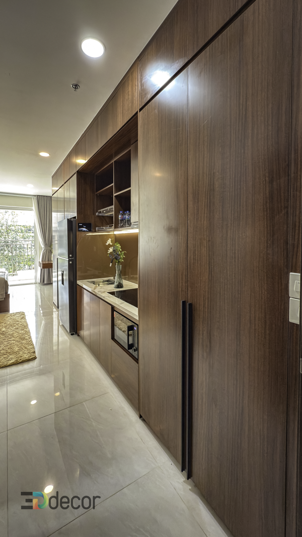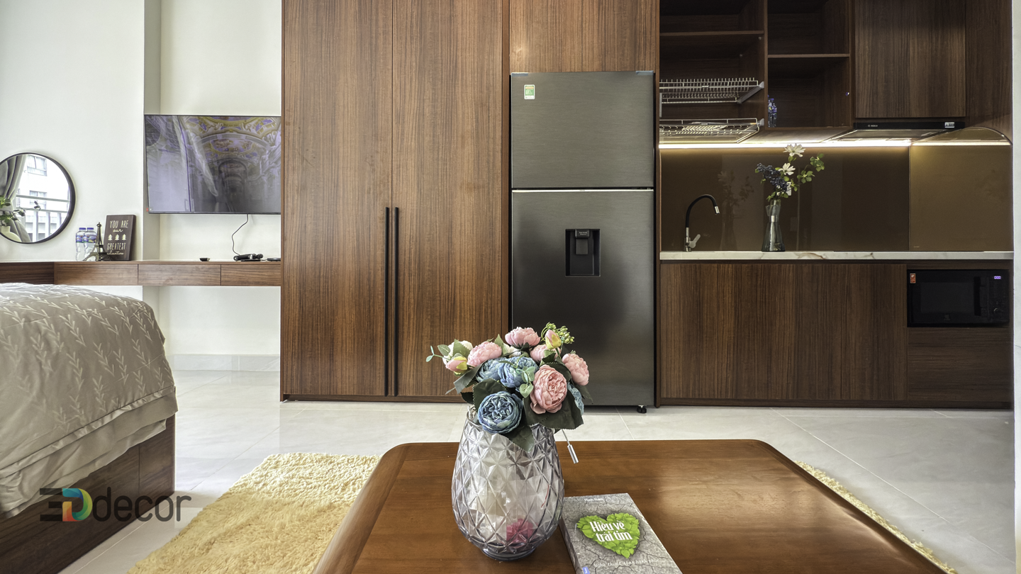 Không phải căn hộ nào cũng rộng rãi. Nhưng nếu biết cách bố trí nội thất hợp lý, ngay cả một căn hộ chỉ khoảng 25–30m² vẫn có thể đáp ứng đầy đủ nhu cầu sinh hoạt hằng ngày. Trong dự án lần này, 3Ddecor thiết kế dành riêng cho chủ nhà là người đàn ông lịch lãm, yêu thích sự tinh tế và có gu thẩm mỹ cao. Tổng thể không gian mang phong cách hiện đại tối giản kết hợp tông gỗ trầm, tạo cảm giác sang trọng, giống như một phòng suite khách sạn cao cấp nhưng vẫn đảm bảo công năng sinh hoạt hằng ngày.