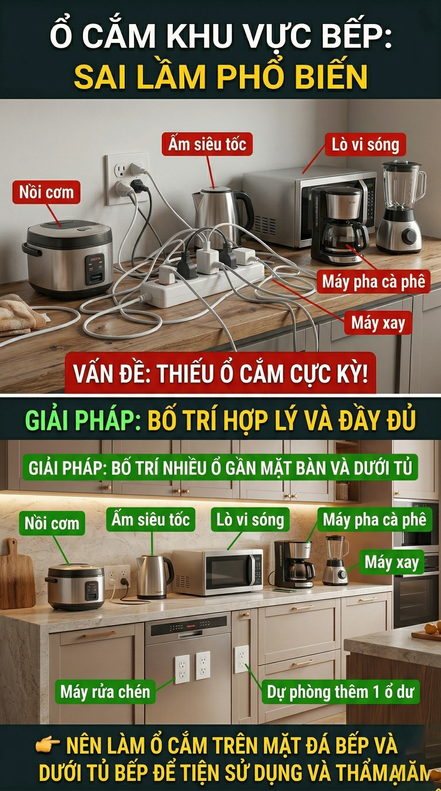 5. Ổ cắm khu vực bếp (khu vực cần tính toán kỹ nhất)