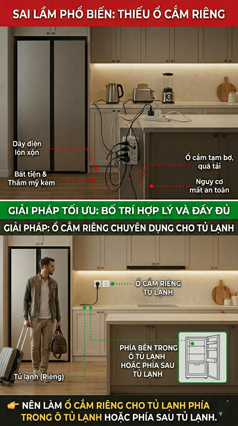 6. Ổ cắm riêng cho tủ lạnh