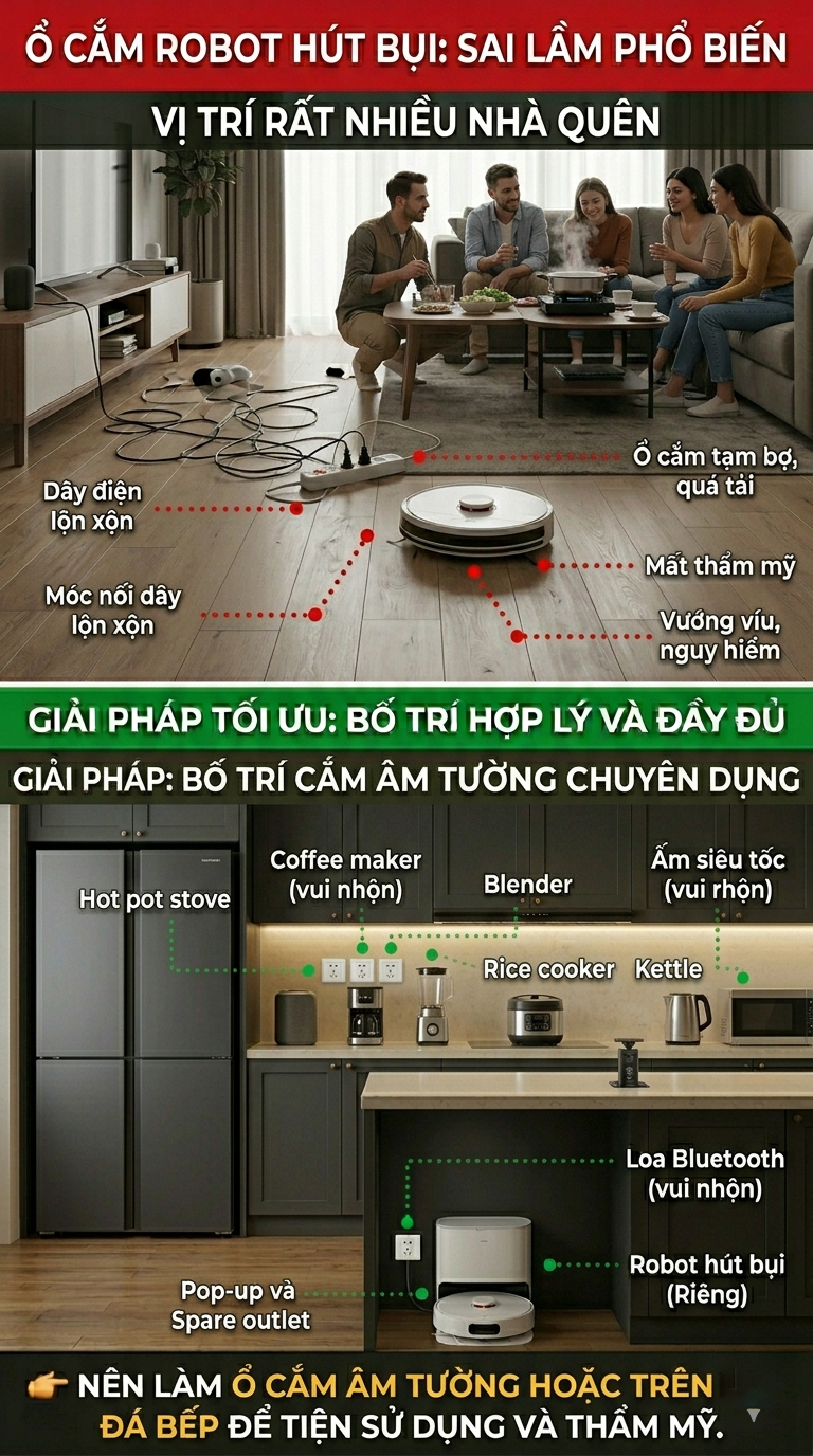 Vì vậy, việc tính toán vị trí ổ cắm điện ngay từ giai đoạn thiết kế và thi công là vô cùng quan trọng.