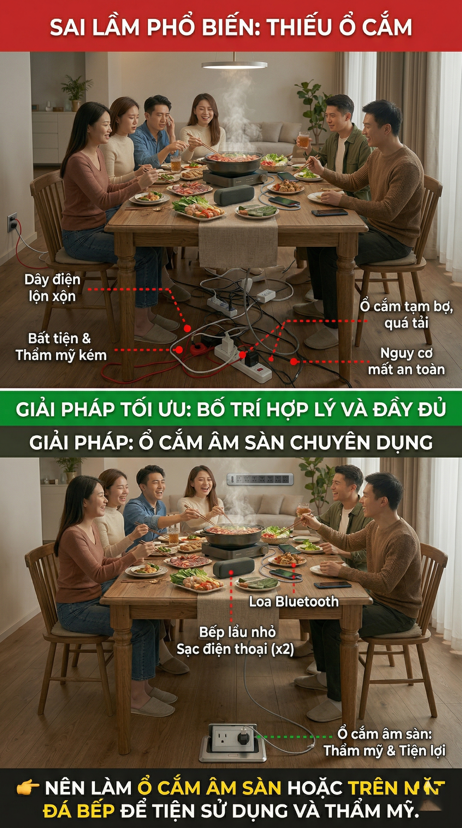 - Bố trí 1 ổ cắm gần bàn ăn