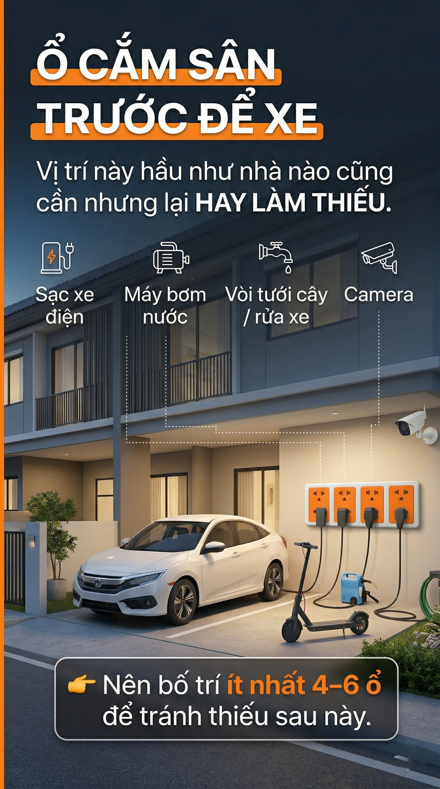 10. Ổ cắm khu vực ban công hoặc sân để xe