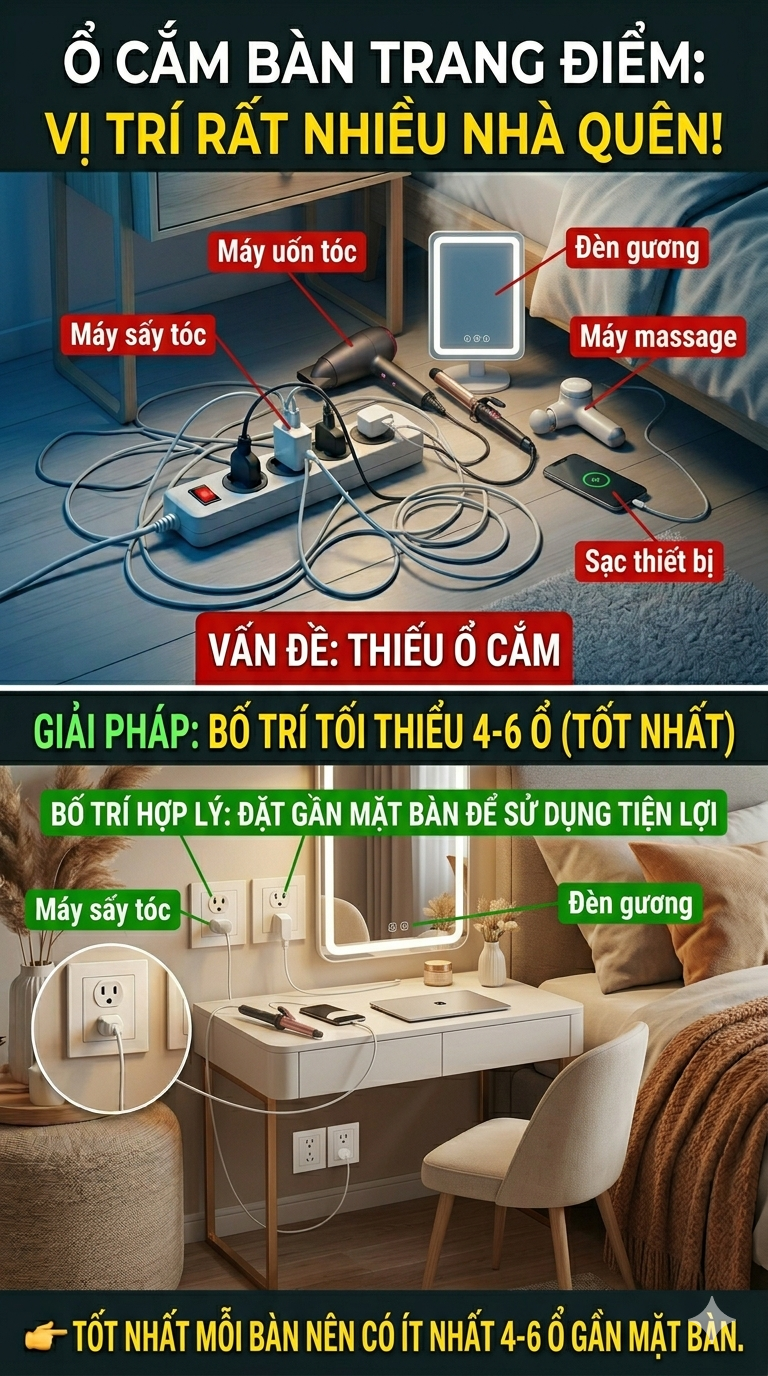 4. Ổ cắm bàn trang điểm (vị trí rất hay bị quên)